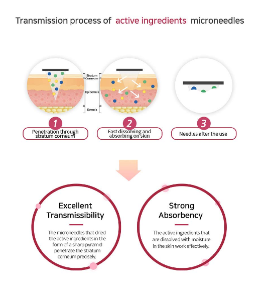 Патч имеет микроиглы для доставки эффективных компонентов для лечения пигментации и темных пятен на лице. 850 микроигл, в состав которых входит ниацинамид, транексамовая кислота, аскорбилглюкозид и гиалуроновая кислота, помогают осветлить пигментацию и темные пятна.