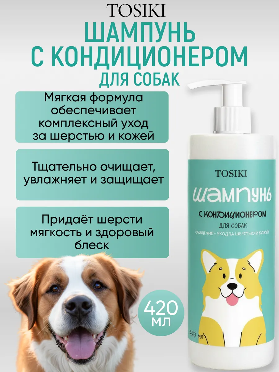 Фото TOSIKI Шампунь с кондиционером для собак 420 мл