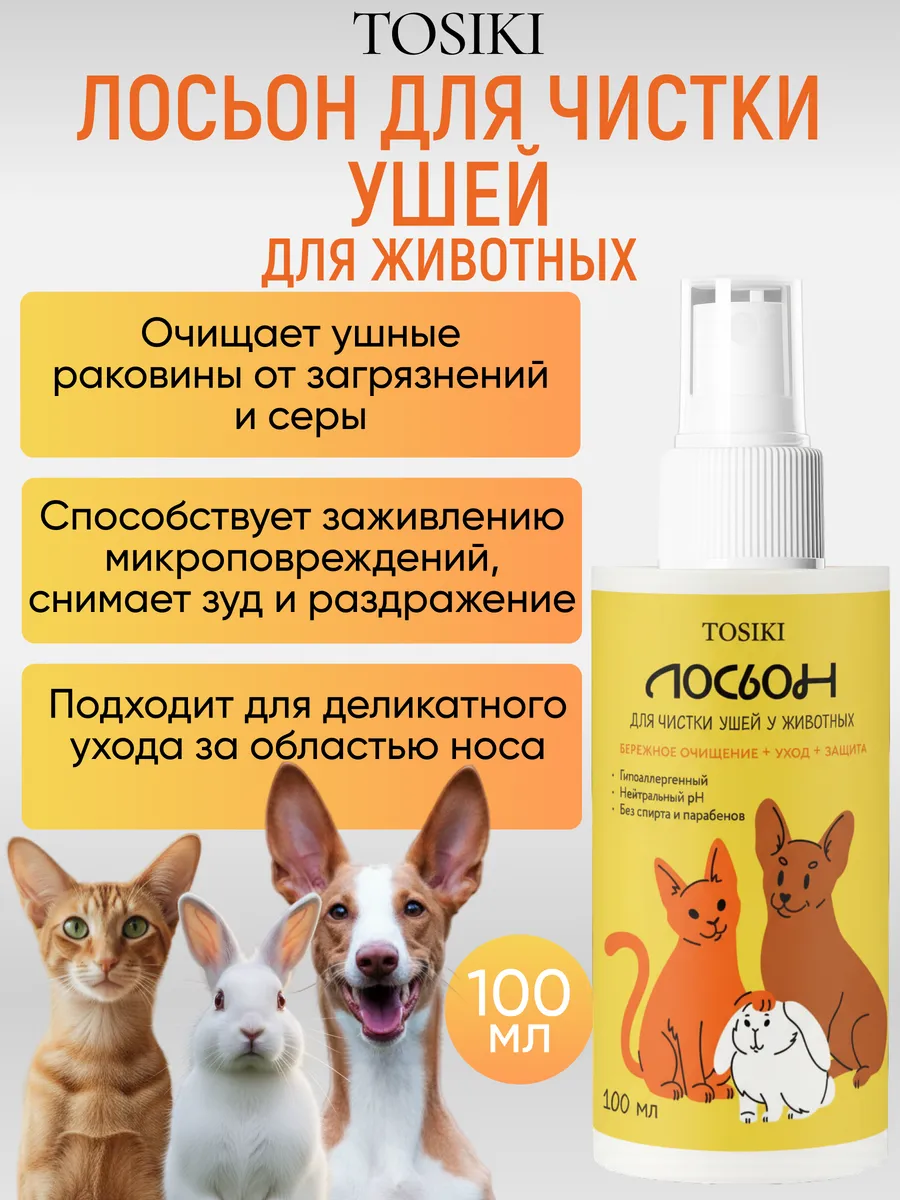 TOSIKI Лосьон для чистки ушей для животных 100 мл