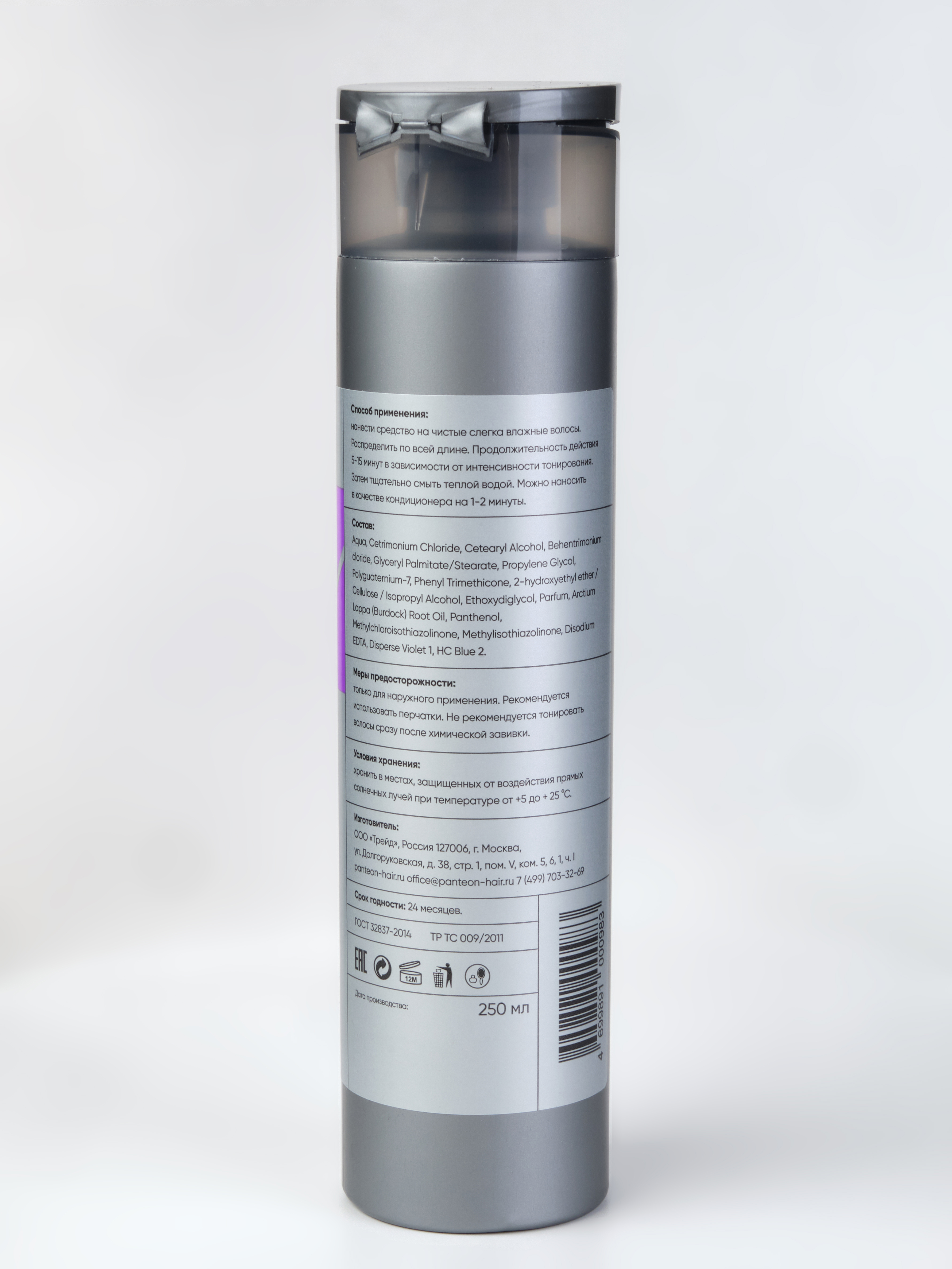 Средство 2 в 1 (кондиционер и маска). Профессиональная маска содержит в своем составе пантенол и масло репейника. Благодаря легкому фиолетовому пигменту, нейтрализует нежелательные оттенки блонда, тонируя и увлажняя волосы. Улучшает расчесывание, предупреждая спутывание. Борется с ломкостью и электризацией волос.